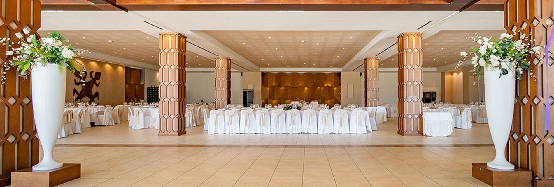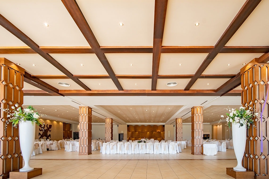 With a capacity for more than 400 guests and located on the ground floor of the main building, it has large windows; offering magnificent views of the pool area and direct access to the outside. This allows welcoming cocktails to be offered on its outdoor terrace, conveniently decorated for the occasion.