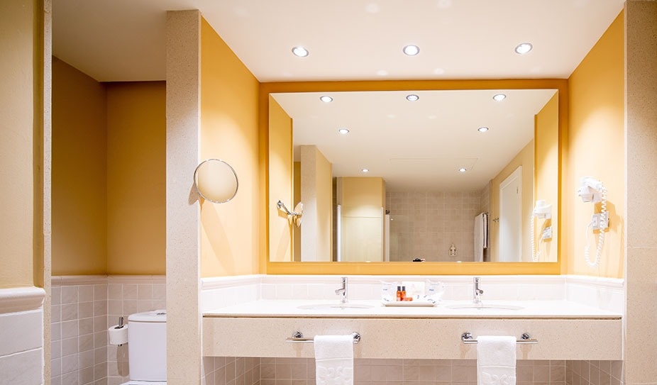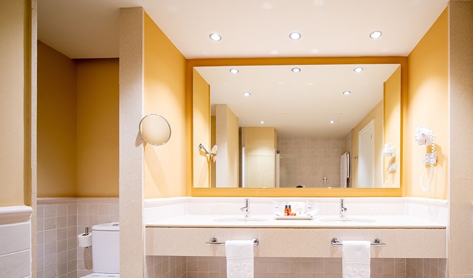 The double room is fully equipped with all the elements of a 4-star hotel. Decorated following the new and contemporary style of the complex, with lots of natural light and wooden or ceramic floors.